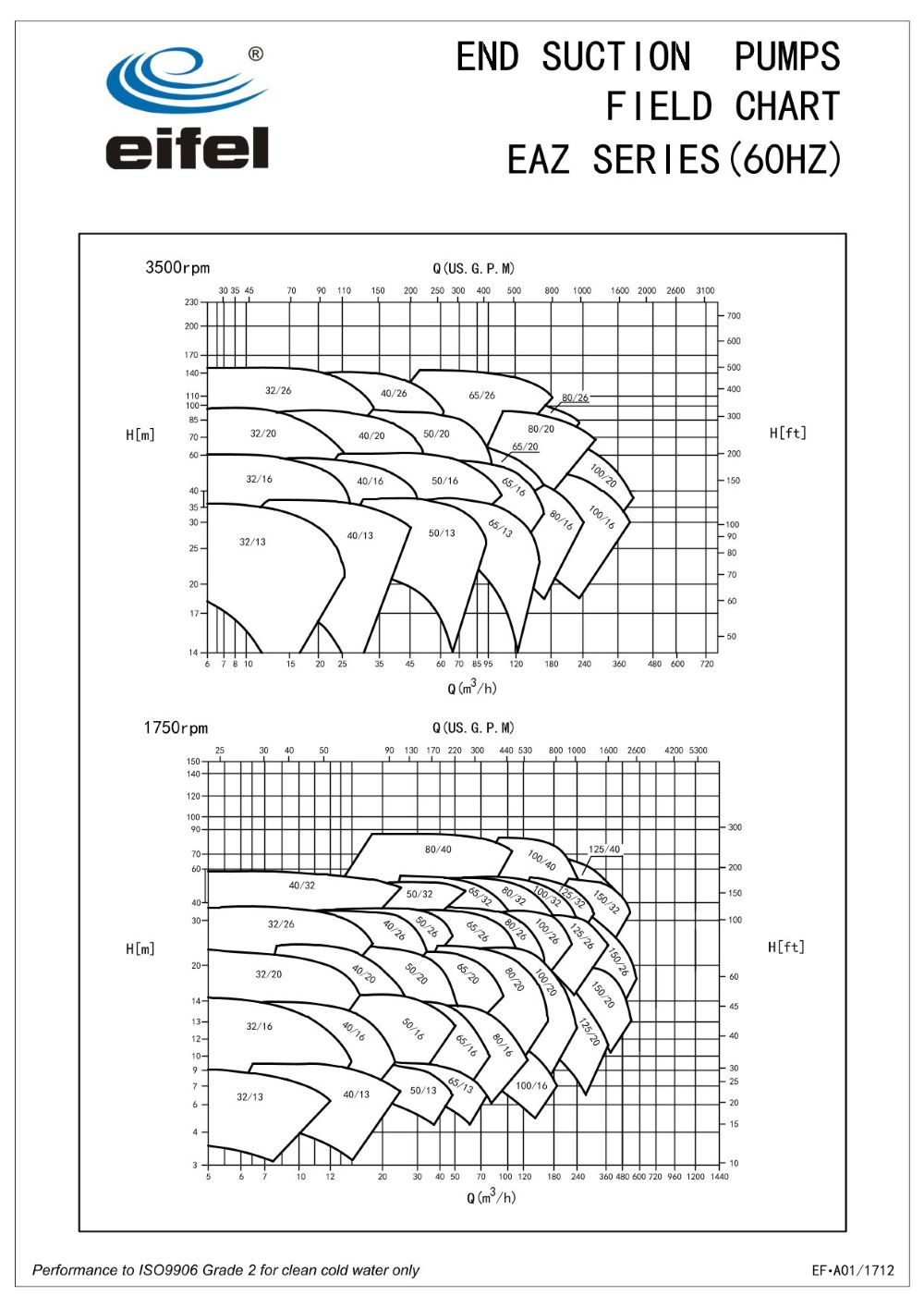 1450 or 2900 rpm (50Hz)/1750 or 3500rpm(60Hz)Max. Working Pressure :