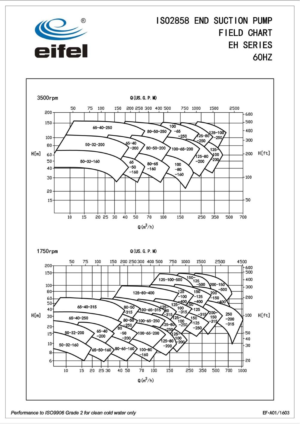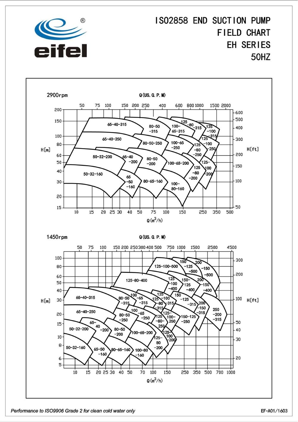 -15~80℃(standard) ; 80~120℃(on special request)Eifel High-Efficiency End Suction Centrifugal Water Pump