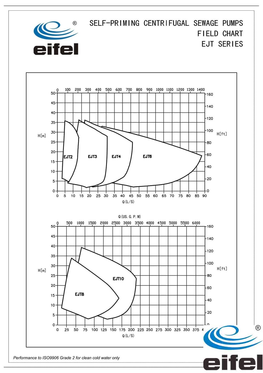 Raw sewage, wastewater, slurry, solids-laden liquids, stormwater, agricultural effluent, industrial by-products, fiber-rich sludge, trash-laden liquidsThe EJT Series Self-Priming Sewage Pump is built for tough environments where reliability, continuous operation, and easy serviceability are essential. With a self-priming depth up to 7.5 meters and a non-clog impeller design, the EJT Series efficiently handles wastewater containing solids, stringy materials, sludge, and abrasive particles.