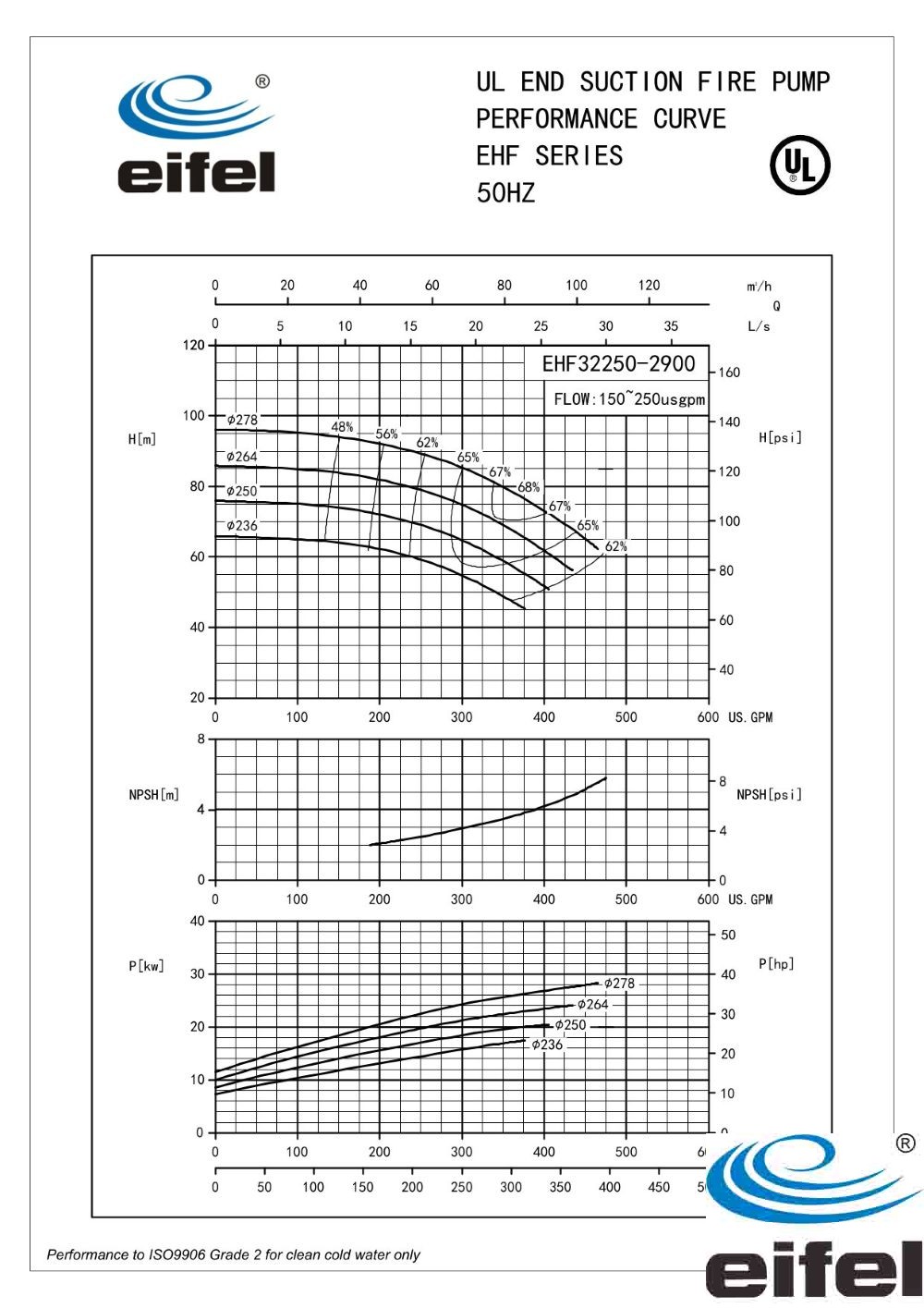 EHF pumps are designed in accordance with all requirements of UL standard for safety (UL448). EHF pumps are optimized hydraulic pump design, brought high efficiency and the performance of energy conservation.